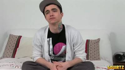 Jake Bass es un jovencito que se masturba en la cama y apunta lejos al correrse en su propia cara durante esta escena