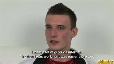 Ver a Kevin con la polla en la mano y masturbándose hasta que está listo para cubrirse con su propio semen.