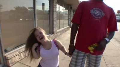 Esta chica enana sabe muy bien que los hombres negros tienen una polla bien grande y aprovechará que está con un semental para seducirlo y follar con él.