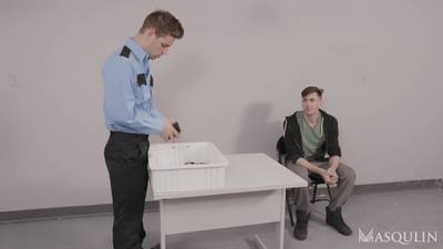 El guapo chico disfruta el interrogatorio del sexy oficial de policía gay que quiere escanear su culo.