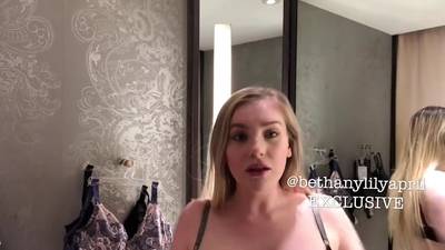 La sexy rubia estrella porno Beth Lily está en el probador midiendo sujetadores en sus bonitas Bellas tetas!