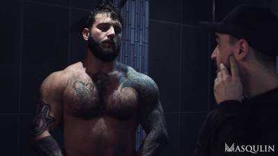 Jay y Ryan se chupan la polla y se follan el culo delante del musculoso Markus, que observa la escena mientras se hace la paja excitado.
