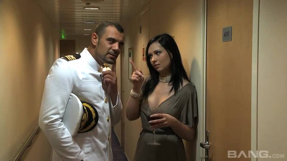 Esta morena sexy está siendo llenada con la polla del capitán del barco y hasta se la mete por el culo