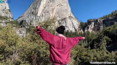 Eva Elfie chupa y le hace la paja a su novio en medio de la naturaleza
