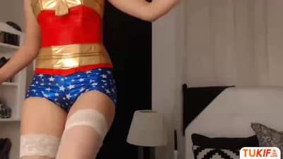 Melody lleva un pequeño y sexy disfraz, se abrirá el culo con un tapón y bailará desnuda mostrando sus hermosas curvas y manteniendo sus tacones