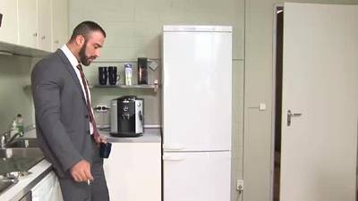 Spencer y Jeff aprovechan la pausa en la oficina para disfrutar de una mamada relajante y una eyaculación facial.