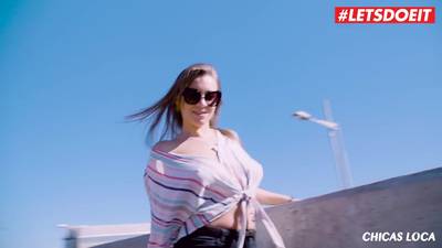 La linda chica tetona hace turismo en los lugares más emblemáticos de Madrid. Cuando llega al hotel, la zorra excitada se desnuda y se masturba.