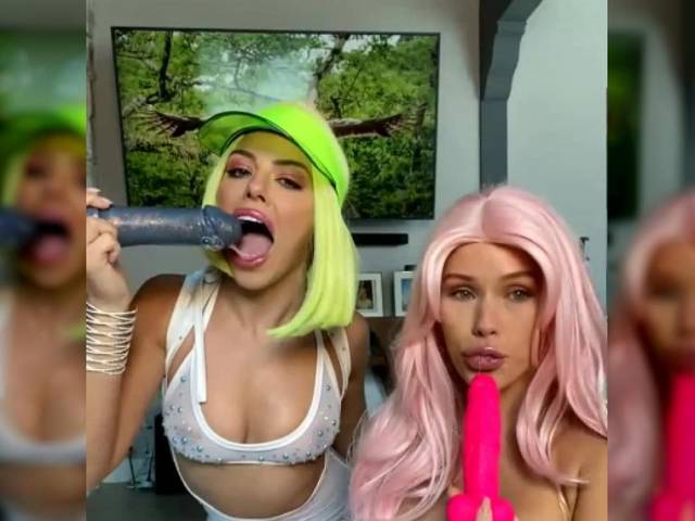 La despampanante estrella porno Adriana Chechik invita a una amiga a hacer un vídeo de cosplay donde ambas chupan consoladores y se masturban desnudas.