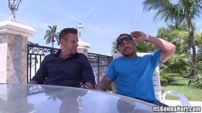 El sexy millonario contrata a un negro para que le perfore el ano. De bono obtiene una eyaculación facial!