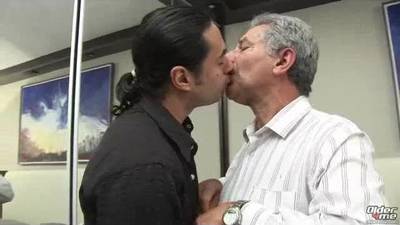 El moreno homosexual quiere una promoción y sabe que el viejo gay se muere por follar un culo joven.