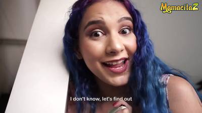 A esta hermosa sirena de pelo azul le encanta venir. En la calle, se le insinúa a un tipo y le hace una mamada como una reina. Le da la vuelta