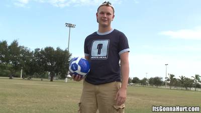 Este joven homosexual rubio está ansioso porque el sexy negro bien dotado meta muchos goles en su culo.
