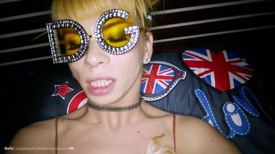 Ella chupa la polla con las gafas de sol amarillas, luego una gran sodomía, los chicos sólo se corre en el culo de la ninfa!
