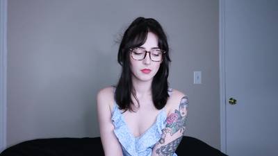 Esta joven morena con gafas tiene una cara bonita, tatuajes interesantes y una apariencia delicada, pero es una zorra a la que le gusta chupar pollas