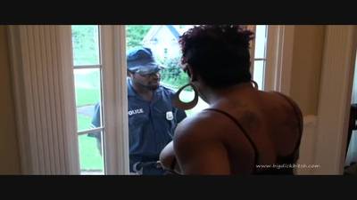 Esta transexual negra tetona se portó mal así que va a recibir una lección de este policía de la BBC en este porno ts.