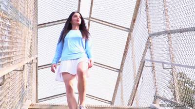 Esta zorra joven es Arielle Lane, y sabe muy bien como excitar a sus fans! Ella muestra su coño peludo a través de bragas transparentes, para seducirte.