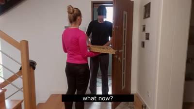 El repartidor de pizza olvidó la salsa. Tendrá que bajarse las bragas y sustituirla por su propio esperma. La mujer le vaciará las pelotas a conciencia!