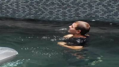 ![Abraham folla con Dario en la piscina Abraham folla con Dario en la piscina]()