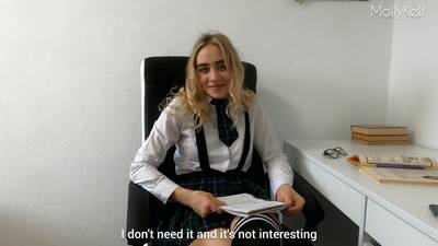 Al ver sus tetas de joven y su coño mojado, el travieso profesor prefiere follársela y ponerle una buena nota! Esta rubia solo piensa en el sexo!