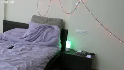 Una atractiva chica de grandes pechos, se pone unas medias negras, se tumba en la cama y se masturba con los dedos y un consolador negro hasta el orgasmo.