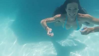 La guapa milf quiere experimentar el sexo en la piscina con la gopro bajo el agua, mama bajo el agua y recibe un creampie.