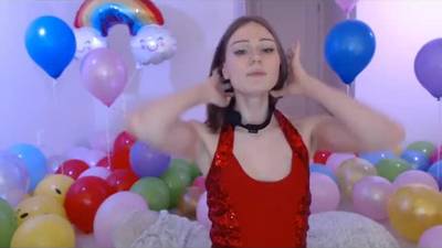 En medio de todos estos globos. Me lo estoy pasando como nunca introduciéndome un plug en el culo y haciendo vibrar mi clítoris hasta que me corro.