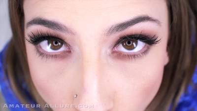 Una belleza vestida de azul que sabe chupar como reina del sexo