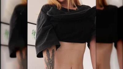 Rubia con tatuajes tiene un hermoso coño que mostrarnos!