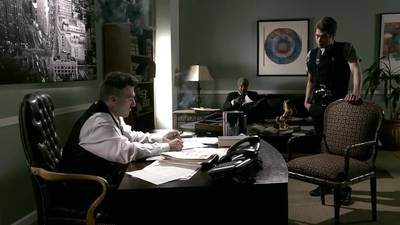 La secretaria del diario se encuentra con el jefe de RRHH en el sótano los dos cachondos y empiezan a liarse y follar duro