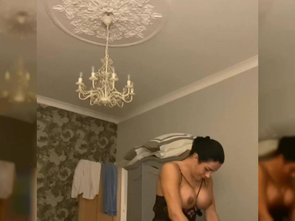 Una morena transexual de grandes tetas se pone lencería sexy y domina completamente a su amante trans. La folla por el culo hasta que se corre!