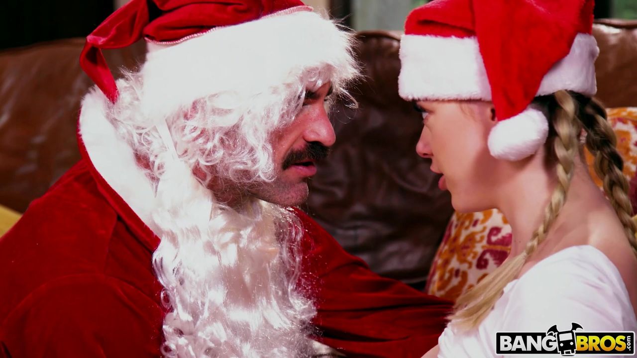 Ese jodido Papá Noel va a tirarse a una rubita, va a saborear su rico coño de joven y darle embestidas de polla sin saber que ella ya no es virgen.