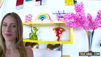 Rubia sexy en medias le gusta el sexo anal. Su amante, mete su polla gruesa, bolas profundas y la folla sin piedad, para correrse en su boca!