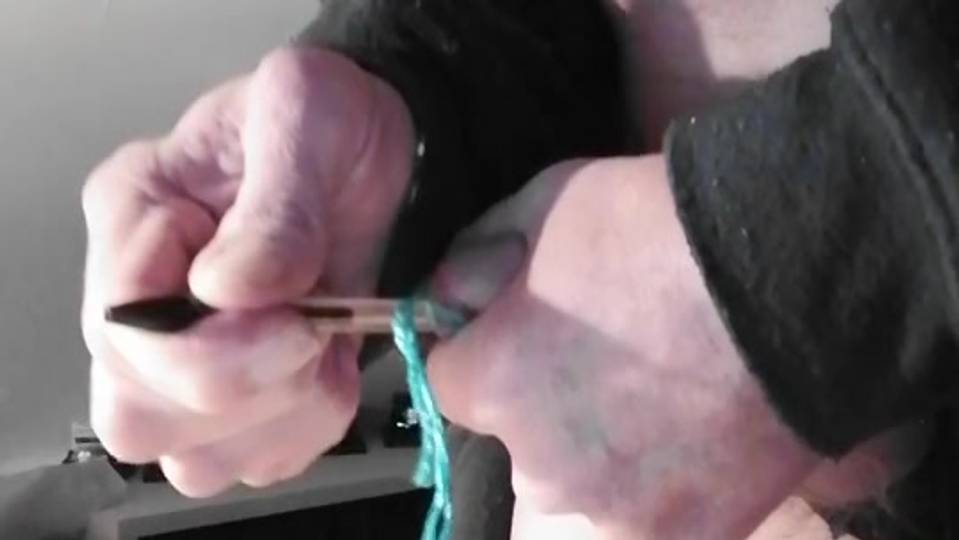 Mientras usa bragas de encaje, este hombre se introduce un mango en la uretra y se perfora la piel del pene con una aguja, todo ello antes de una paja.