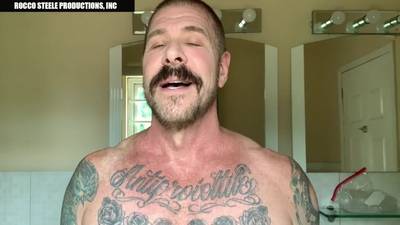 Espectáculo en solitario del barbudo gay Rocco masturbándose