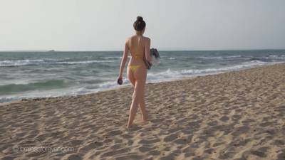 Alissa se quita el bikini mientras pasea por la playa. Se desnuda y disfruta estirándose. Tenemos una visión de su coño y culo mientras ella pasea por la playa.