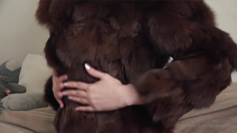 Es invierno y ella permanece bien arropada, pero a la hora de masturbarse se quita parte de la ropa para estar cómoda mamándose una polla que parece muy real.