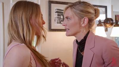 Mona Wales está a punto de dominar a Ashley Lane! Le quita las bragas y se las mete en la boca para que no haga ruido mientras se la folla con muchos sextoys