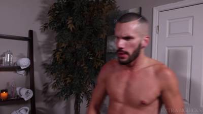 Después de masajear a Marco Lorenzo, Scott Simon se desnuda y le monta la polla a pelo. Luego Marco lo tumba y lo folla hasta que se corre.