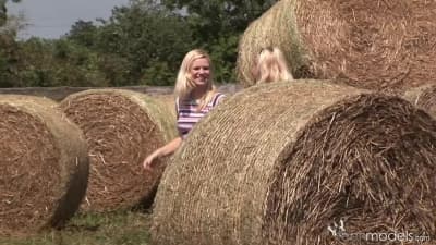 ¡Qué video tan buen de sexo en la naturaleza! Dos adolescentes rubias deciden disfrutar del campo y follarse entre las pilas de heno!