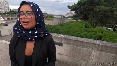 Mujer con Hijab árabe y el culo gordo es follada por dos negros