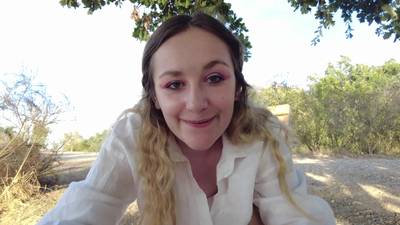 La joven rubia quiere masturbarse de una manera diferente al hacerlo en un parque de la ciudad para ver si alguien la ve con su juguete enterrado en el coño.