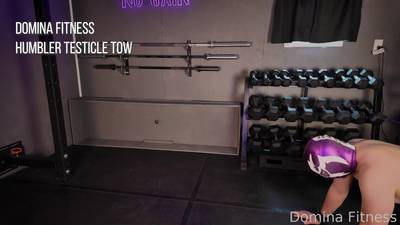 Ella llega al gimnasio y se consigue a un sumiso que se deja amarrar las bolas para convertirse en su burro de carga y pasearla por todos lados. Es simpática.