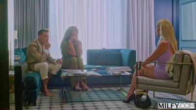 Por el culo es por donde más le gusta a esta Milf rubia, que hoy termina con un pene entre sus tetas y luego en su trasero tal como lo había deseado siempre.