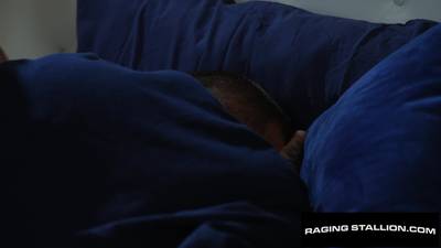 Este hombre moreno encuentra a un musculoso tatuado durmiendo en su cama. En vez de hacer que se vaya, le da la vuelta y empieza a chuparle la polla