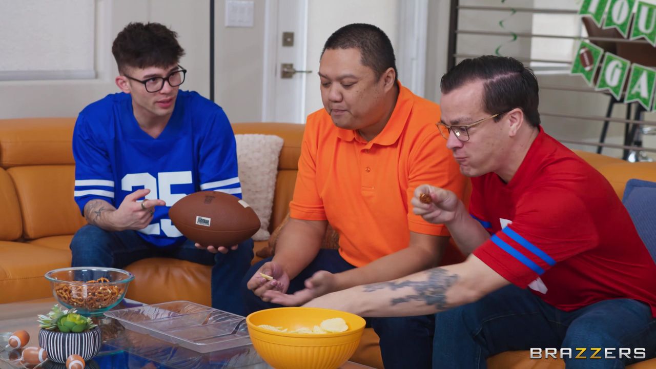 Durante el gran partido, Desiree Dulce, Destiny Mira y September Reign se escabullen para poder usar un strap-on y follarse los coños mutuamente.