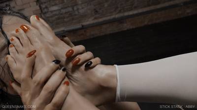 Abby, esclava sumisa, recibe una brutal sesión de azotes de Jessica, la domina. Su cuerpo musculoso queda marcado con rayas rojas tras esta follada intensa.
