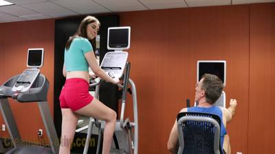 Maya está en el gimnasio con una madura en trío con coños peludos