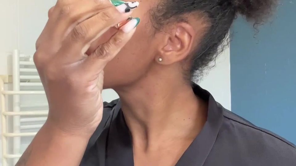 Prisca, una negra tetona con medias, te mira mientras mama con ganas en POV. Un video bien caliente donde sus tetas y su boca te vuelven loco!