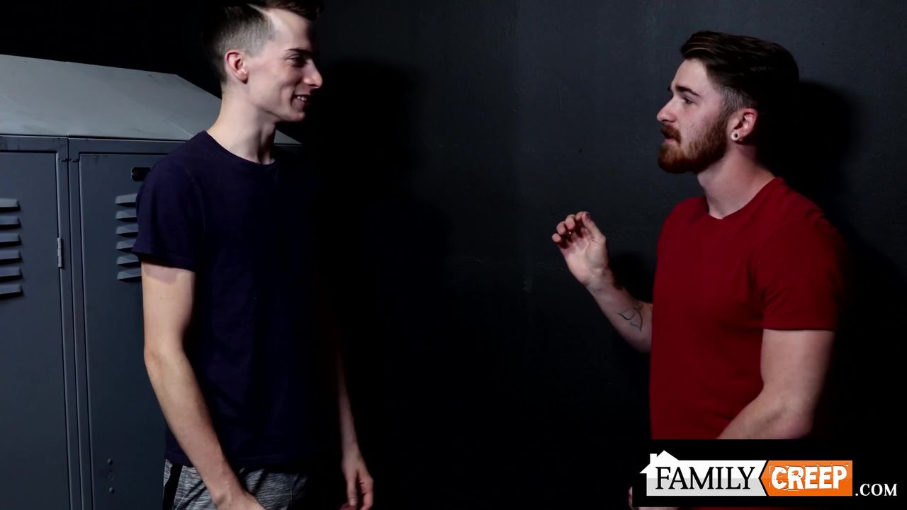 El madurito Dallas Steele es pillado por Nick Milani. Dallas le enseña su enorme polla para que el twink Nick se la chupe y así no cuente su secreto