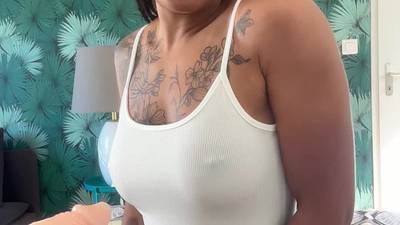 Prisca espera complacernos masturbándose con un dildo mecánico